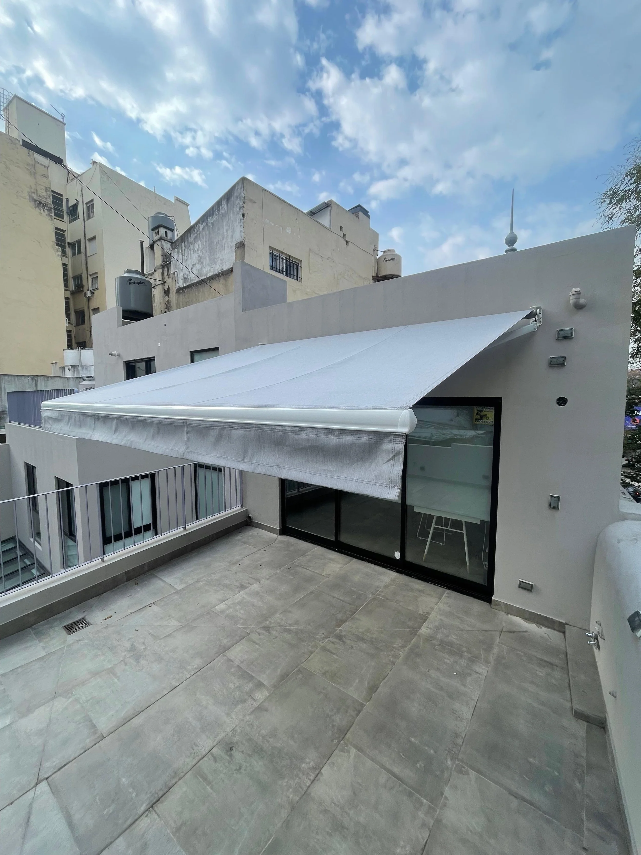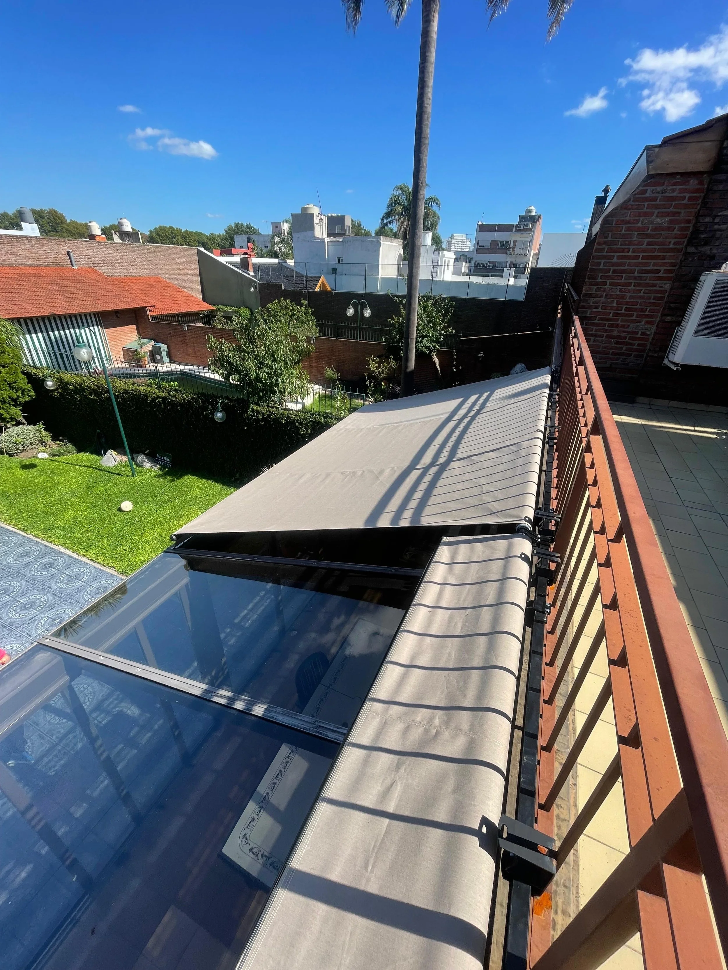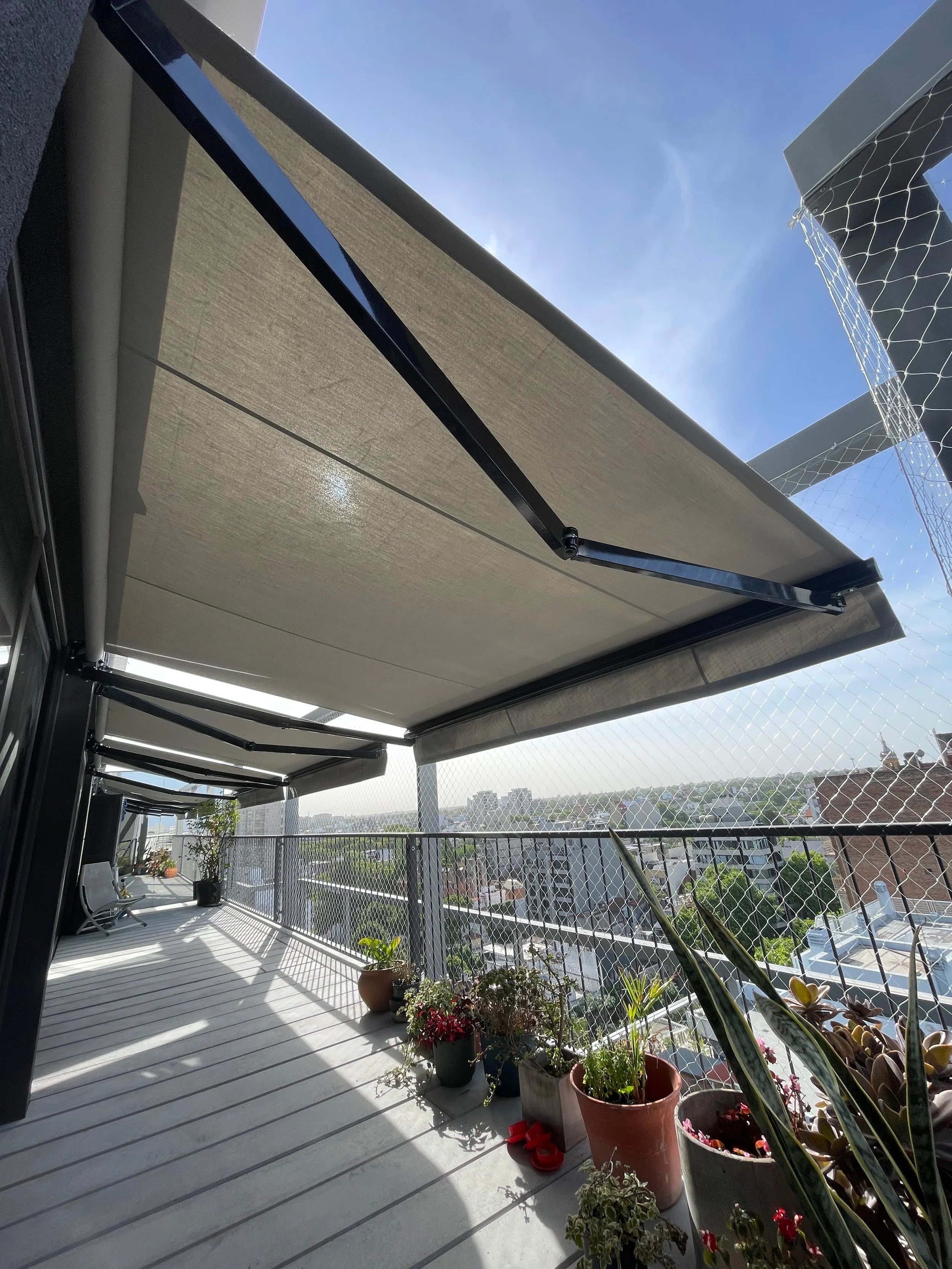 Contamos con una amplia variedad de modelos adaptados a cada tipo de espacio. Para terrazas y balcones, el toldo de brazo invisible es la opción más popular: se despliega hasta 4 metros de proyección y cuando está plegado ocupa un espacio mínimo. Para balcones corridos o espacios con sol lateral, los toldos verticales ofrecen protección y privacidad. Para bares, restaurantes y comercios de Zona Norte, los cerramientos en lona cristal son ideales para extender el uso del espacio exterior durante todo el año.
